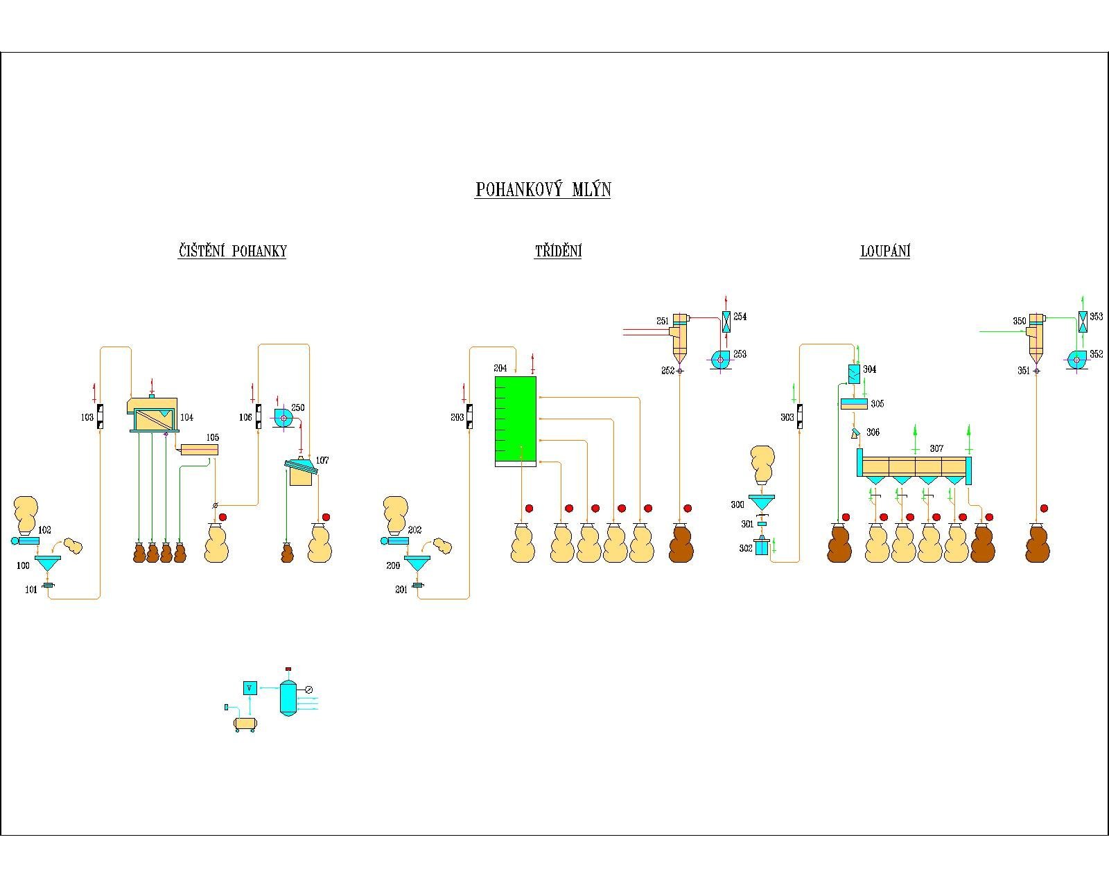 Posklizňová úprava obilovin (příjem obilí, čistění obilí, dopravní systémy)